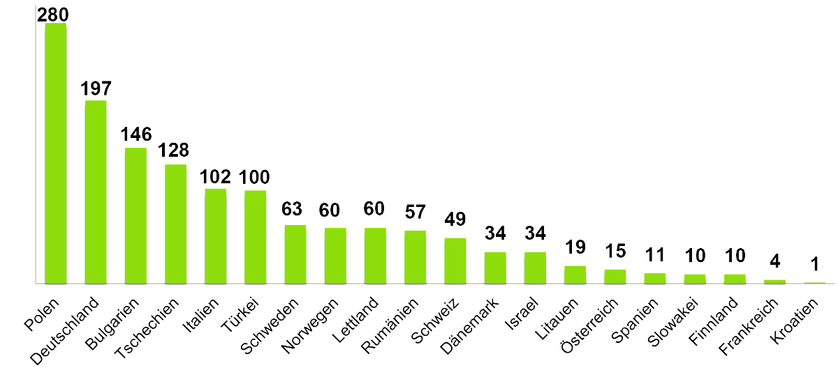 Grafik: Busabsatz von Solaris im Jahr 2014, auf Länder verteilt, in Stück