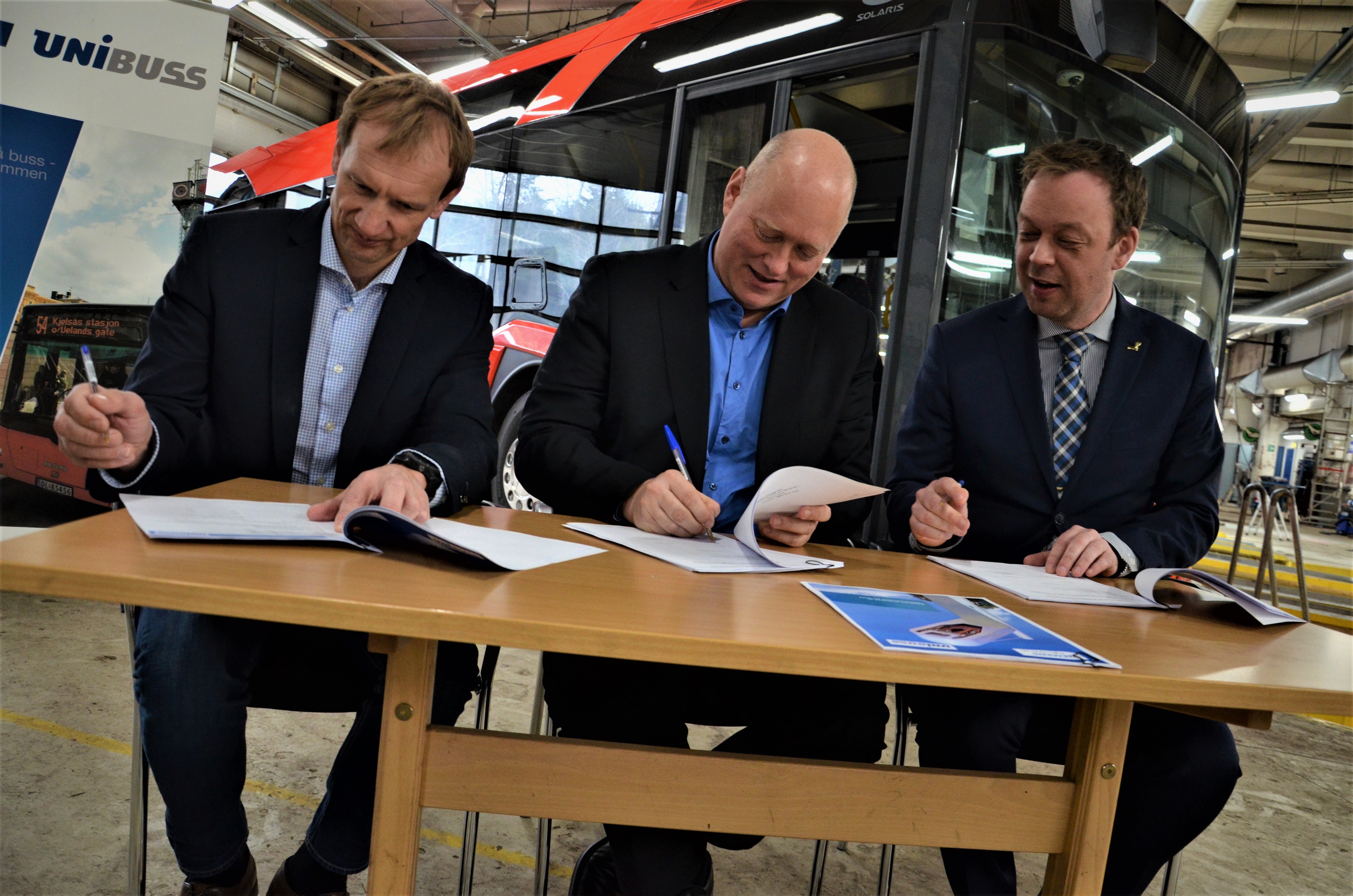 Na zdjęciu od lewej: Lars-Einar Petterson, PR-Manager, Siemens, Øystein Svendsen, CEO of Unibuss, Sverre Skaar, Managing Director, Solaris Norge AS