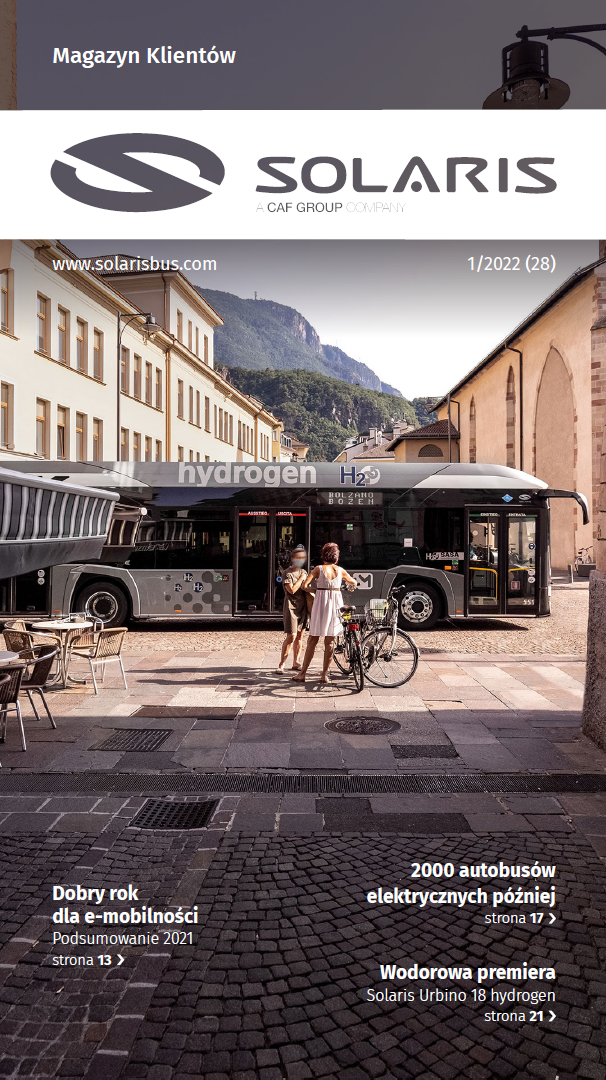 W najnowszym numerze wydawanego nieprzerwanie od ponad 20 lat „Magazynu Solaris” przygotowaliśmy wiele interesujących treści – wszak nie zwalniamy tempa w naszych działaniach. W ostatnich tygodniach zakontraktowaliśmy 2000. autobus bateryjny, sporo miejsca poświęcamy więc dziejącej się tu i teraz elektromobilnej rewolucji. Na łamach „Magazynu” zapraszamy Państwa na pierwszą prezentację naszego najnowszego modelu: osiemnastometrowego autobusu wodorowego. Premiera będzie połączona z trzecią edycją konferencji #SolarisTalks. Piszemy również o pierwszych dostawach Urbino 9 LE electric, o projektach rozwojowych, w których bierzemy udział, o udoskonalanych produktach i nowych kontraktach. Wiele miejsca poświęcamy technologii wodorowej. Pochylamy się także nad kwestiami ESG i opisujemy realizowany przez nas program edukacyjny #MastoMisja. To tylko część tematów, które z dumą przybliżamy na kolejnych stronach najnowszego wydania Magazynu Solaris.