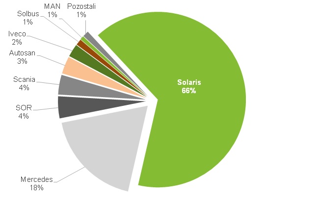 W Polsce Solaris, już 14 rok z rzędu utrzymał pozycję lidera w segmencie niskopodłogowych autobusów miejskich. Z ogólnej liczby amp;oacute;w aż 471 trafiło do krajowych odbiorców. Taki wynik w segmencie niskopodłogowych autobusów miejskich dał firmie aż 66% udział w rynku. Najbliższy konkurent osiągnął 18% udział rynkowy.