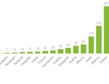 Wykres: Sprzedaż pojazdów marki Solaris w roku 2016 w podziale na kraje, dane w sztukach