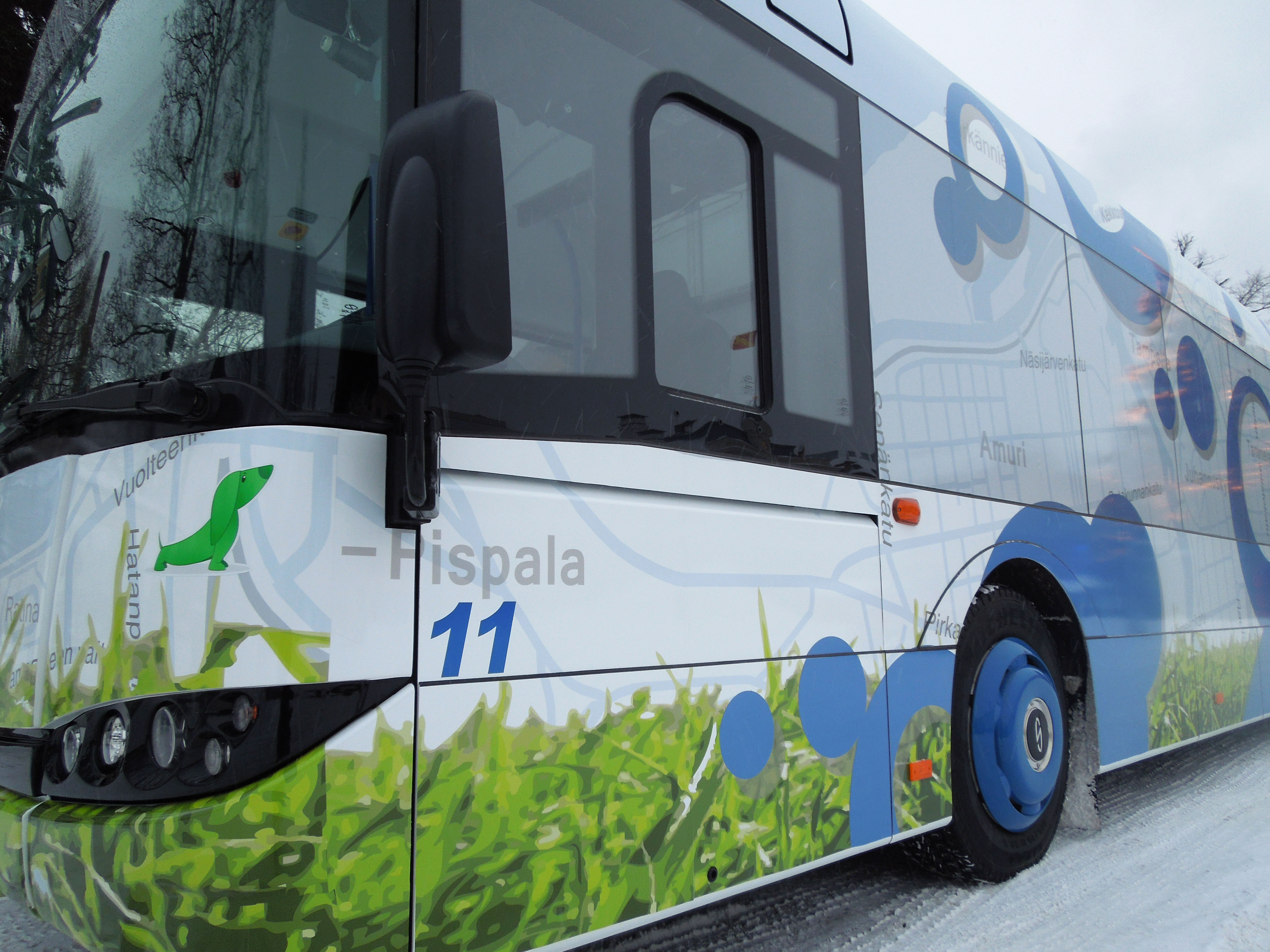 Pierwszymi pojazdami marki Solaris na rynku fińskim są dwa hybrydowe Urbino o długości 12,9 metra. Ekologiczne pojazdy zużywające do 30% paliwa mniej w porównaniu z tradycyjnymi autobusami zostały wyróżnione we flocie autobusów w Tampere poprzez specjalne oklejenie. Aby wyłonić najciekawszą propozycję graficzną, przewoźnik ogłosił konkurs wśród mieszkańców Tampere. Zwycięzcą został Timo Huusko, który w swoim projekcie, nazwanym BlueBlob wykorzystał sympolikę błękitnych kropli i czystych ulic miasta.